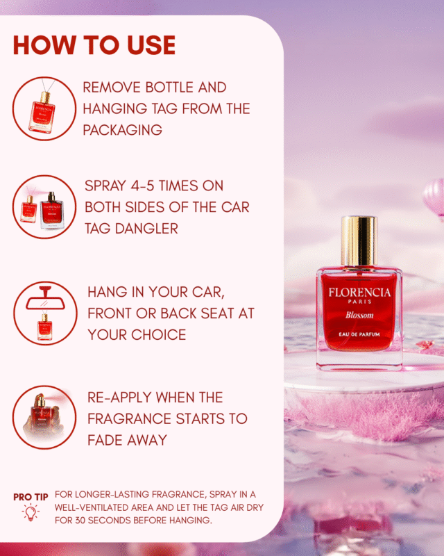Florencia Blossom – Set of 2 Luxury Car Perfume Tags + Blossom Perfume (Floral, Fresh & Elegant)
