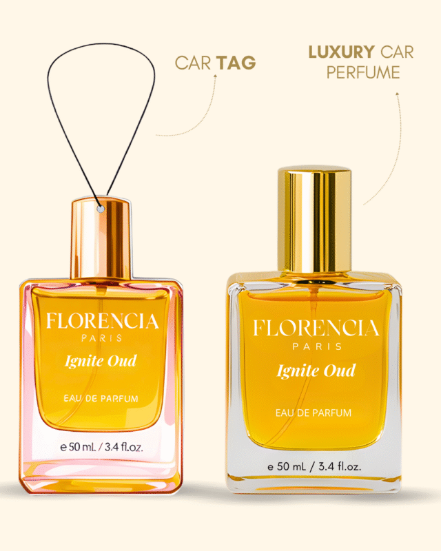 Florencia Ignite Oud – Set of 2 Tags Luxury Car Perfume Tags + Ignite Oud Perfume (Rich, smoky, and intensely royal)