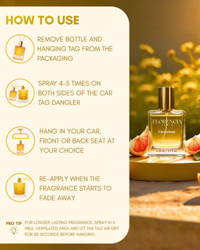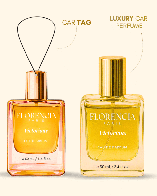 Florencia Victorious – Set of 2 Luxury Car Perfume Tags + Victorious perfume (Energetic, Sporty & Confident)