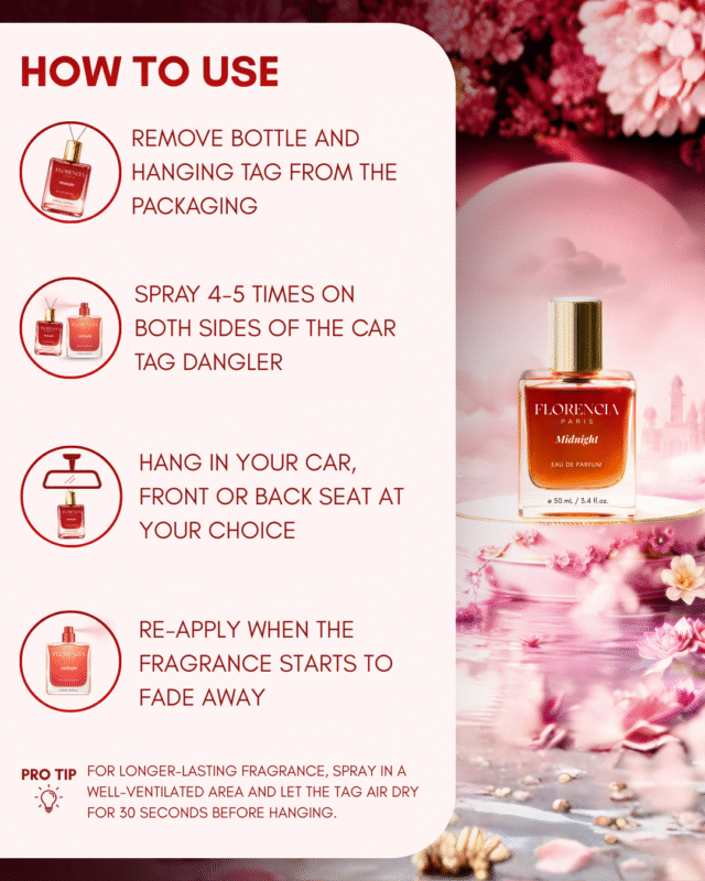 Florencia Midnight – Set of 2 Luxury Car Perfume Tags + Midnight Perfume (Dark, Warm & Addictive)