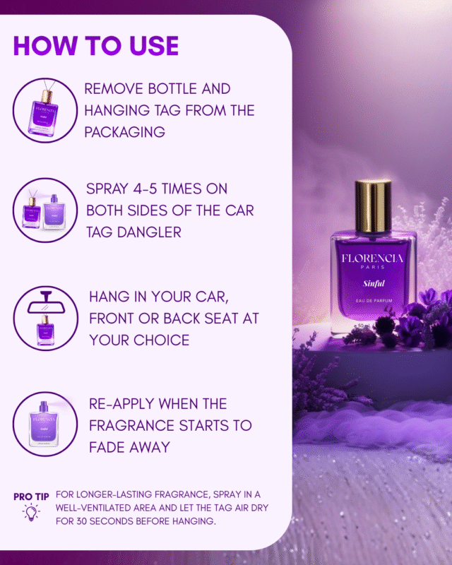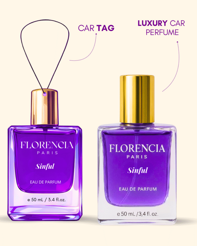 Florencia Sinful – Set of 2 Luxury Car Perfume Tags + Sinful Perfume (Bold, Seductive & Intense)