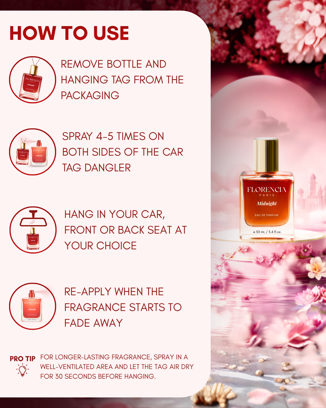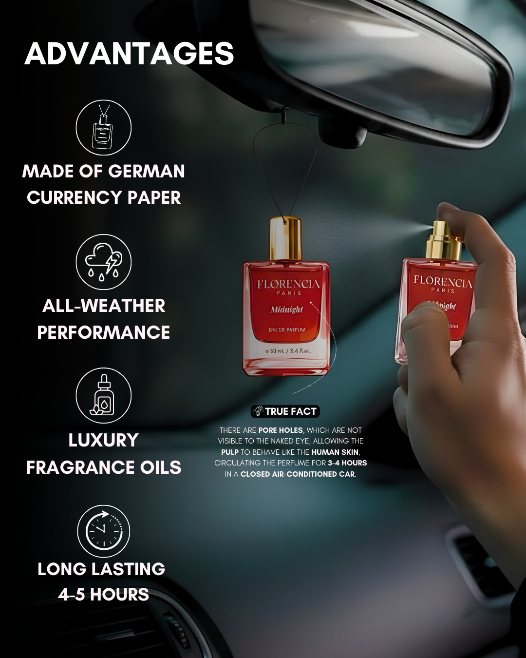 Florencia Midnight – Set of 2 Luxury Car Perfume Tags + Midnight Perfume (Dark, Warm & Addictive)